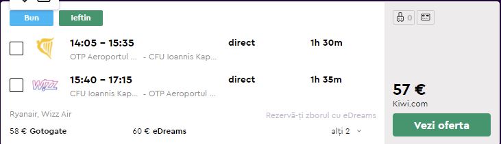 - Zbor: Bucuresti – Corfu, 57 euro, dus-intors, operat de Ryanair si Wizz Air