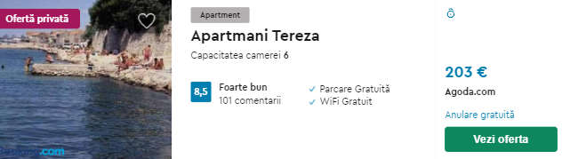 - Cazare (opt. 2) Apartmani Tereza – 203 euro / 7 nopti / camera dubla