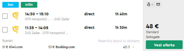 - Zbor Bucuresti – Zadar, 48 euro, dus-intors, operat de Ryanair