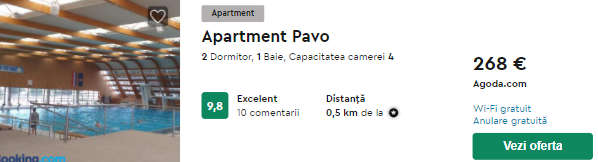- Cazare (opt. 2) Apartment Pavo – 268 euro / 7 nopti / camera dubla