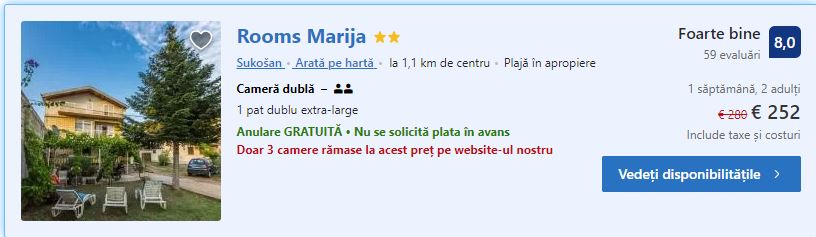 - Cazare 2: Rooms Marija (Sukosan) – 252 euro / 7 nopti / camera dubla