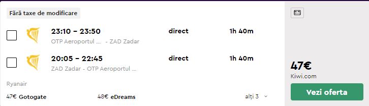 - Zbor: Bucuresti – Zadar, 47 euro, dus-intors, operat de Ryanair