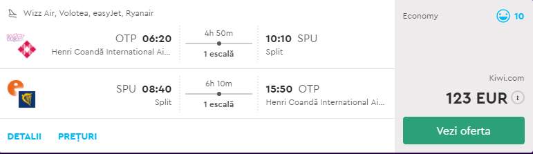 - Zbor: Bucuresti – Split, 123 euro, dus-intors (garantie Kiwi)