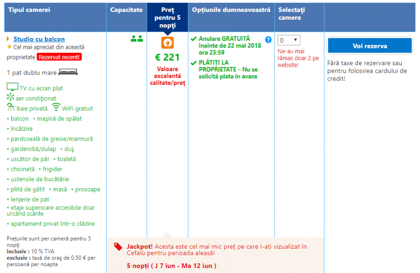 - Cazare 2: Cefalù Mini Studio – 226 euro / 5 nopti / camera dubla / taxa de oras inclusa