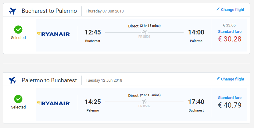 - Zbor: Bucuresti – Palermo, 70 euro, dus-intors, operat de Ryanair