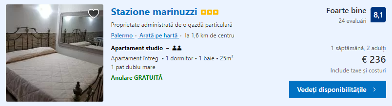- Cazare 1: Stazione marinuzzi – 236 euro / 7 nopti / camera dubla