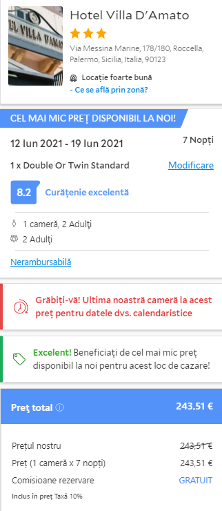 - Cazare 2: Hotel Villa D’Amato – 244 euro / 7 nopti / camera dubla