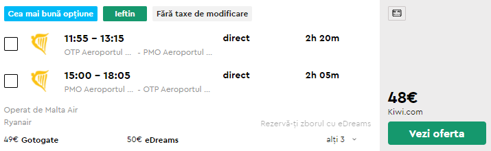 - Zbor: Bucuresti – Palermo, 48 euro, dus-intors, operat de Ryanair