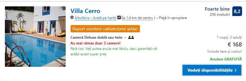 - Cazare 2 (Albufeira): Villa Cerro – 168 euro / 7 nopti / camera dubla