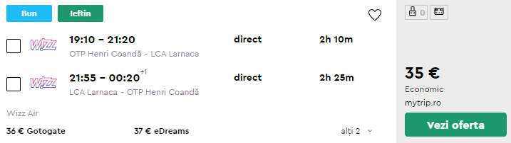 - Zbor Bucuresti – Larnaca, 35 euro, dus-intors, operat de Wizz Air