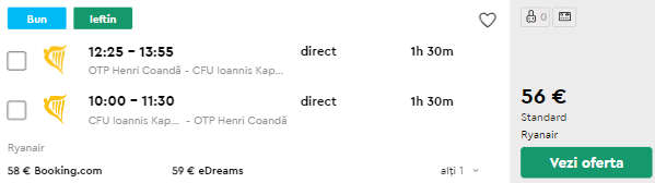 - Zbor Bucuresti – Corfu, 56 euro, dus-intors, operat de Ryanair