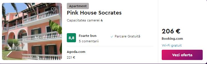 - Cazare (opt. 2): Pink House Socrates – 206 euro / 6 nopti / camera dubla