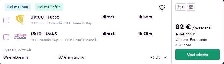 - Zbor: Bucuresti – Corfu, 82 euro, dus-intors, operat de Ryanair si Wizz Air