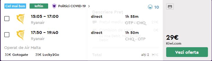 - Zbor: 58 / 2 = 29 euro/p