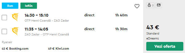 - Zbor Bucuresti – Zadar, 43 euro, dus-intors, operat de Ryanair