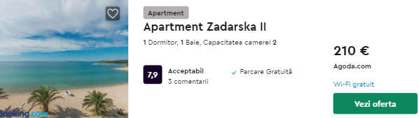 - Cazare (opt.1) Apartment Zadarska II (Dinjiska) – 210 euro / 7 nopti / camera dubla