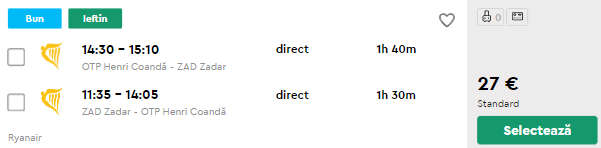 - Zbor Bucuresti – Zadar, 27 euro, dus-intors, operat de Ryanair