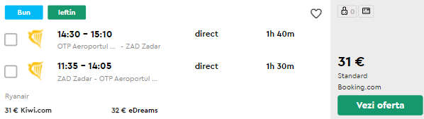 - Zbor Bucuresti – Zadar, 31 euro, dus-intors, operat de Ryanair