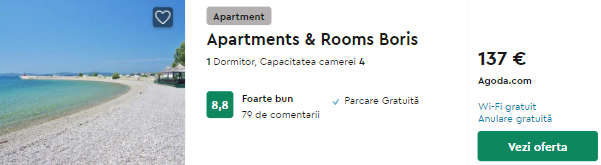 - Cazare (opt.1) Apartments & Rooms Boris (Sukošan) – 137 euro / 7 nopti / camera dubla
