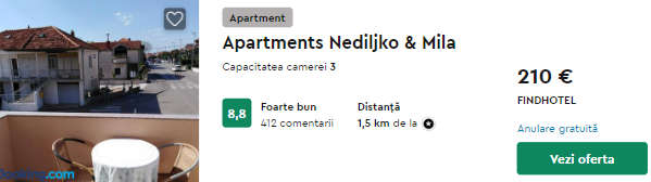 - Cazare (opt. 2) Apartments Nediljko & Mila (Zadar) – 210 euro / 7 nopti / camera dubla