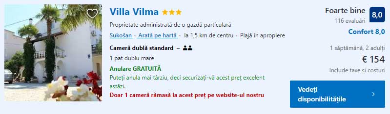 - Cazare 2: Villa Vilma (Sukošan) – 154 euro / 7 nopti / camera dubla