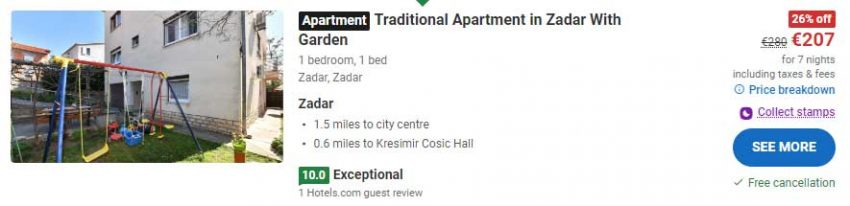 - Cazare 3: Traditional Apartment in Zadar with Garden – 207 euro / 7 nopti / camera dubla