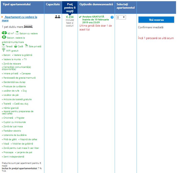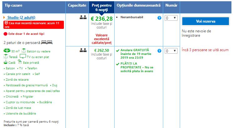 - Cazare 3: Apartamento Pancho – 238 euro / 6 nopti / camera dubla