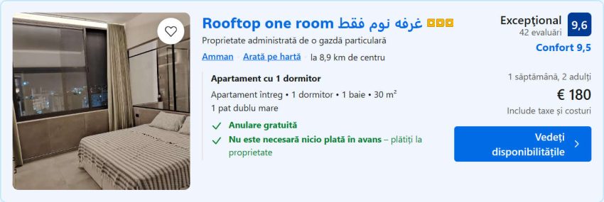 - Zbor: Bucuresti – Amman, 62€, dus-intors, operat de Ryanair