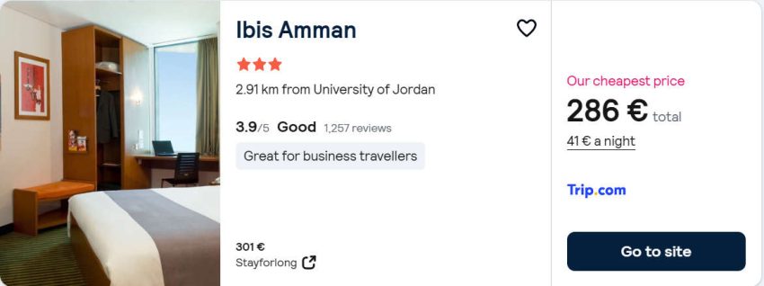 - Cazare (opt. 2): Ibis Amman – 286€/ 7 nopti / camera dubla