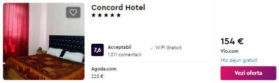 - Cazare (opt. 2) Concord Hotel – 154 euro / 7 nopti / camera dubla