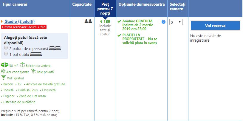 - Cazare 2: Erminia Studios – 189 euro / 7 nopti / camera dubla