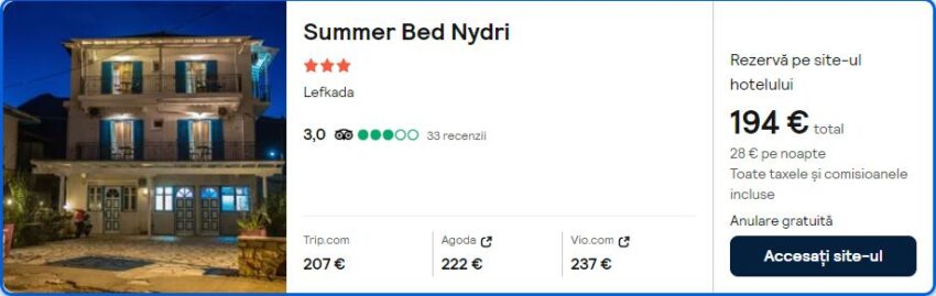 - Cazare (opt. 1): Summer Bed Nydri – 194 euro / 7 nopti / camera dubla