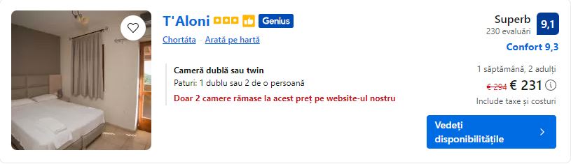 - Cazare (opt. 2): T’Aloni – 231 euro / 7 nopti / camera dubla