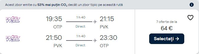 - Zbor: Bucuresti – Preveza, 64 euro, dus-intors, operat de Wizz