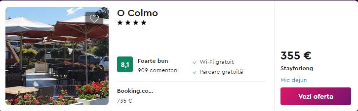 - Cazare (opt. 1): O Colmo 4* – 355 euro / 7 nopti / camera dubla / mic dejun
