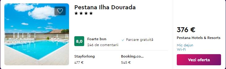 - Cazare (opt. 3): Pestana Ilha Dourada 4* – 376 euro / 7 nopti / camera dubla / mic dejun