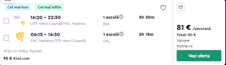 - Zbor: Bucuresti – Funchal, 81 euro, dus-intors, operat de Wizz Air si Ryanair