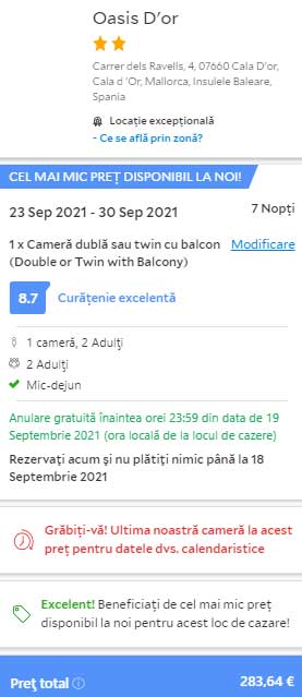 | Vacanta23 – 30 sep. 2021 | de la140€/p |