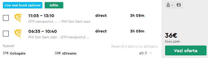 - Zbor: Bucuresti – Palma de Mallorca, 36 euro, dus-intors, operat de Ryanair