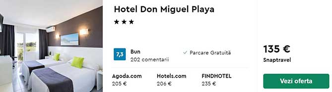 - Cazare 1: Hotel Don Miguel Playa – 135 euro / 4 nopti / camera dubla