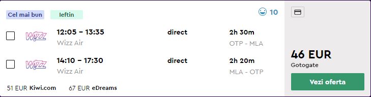 - Zbor: Bucuresti – Malta, 46 euro, dus-intors, operat de Wizz Air