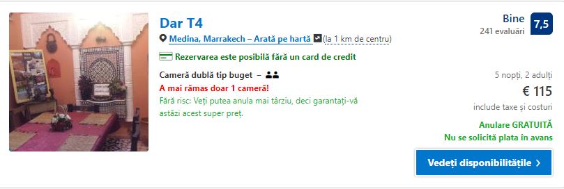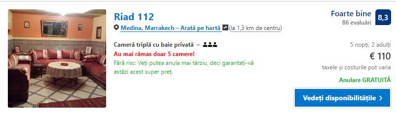 - Cazare 1: Riad 112 – 110 euro / 5 nopti / camera dubla