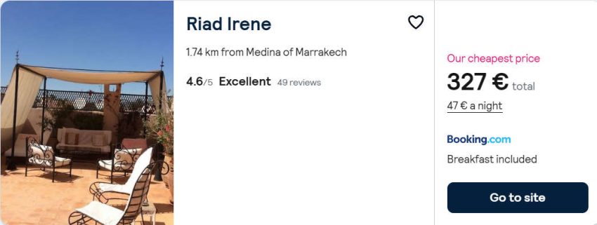 - Cazare (opt. 2): Riad Irene – 327€ / 7 nopti / camera dubla / mic dejun inclus