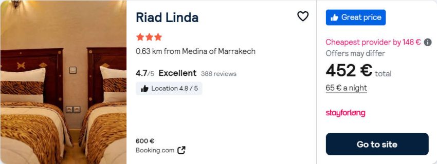 - Cazare (opt. 3): Riad Linda – 452€ / 7 nopti / camera dubla