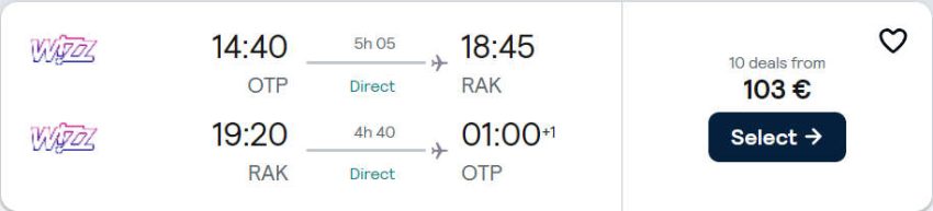 - Zbor: Bucuresti – Marrakesh, 103€, dus-intors, operat de Wizz Air