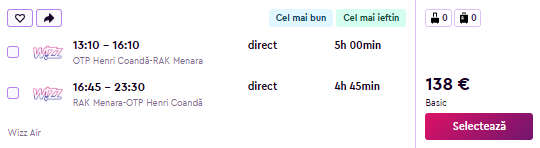 - Zbor: Bucuresti – Marrakesh, 138€, dus-intors, operat de Wizz Air