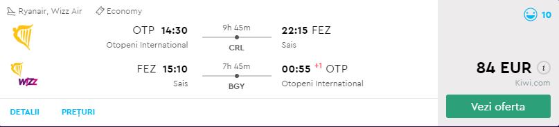 - Zbor: Bucuresti – Fez, 84 euro, dus-intors, operat de Ryanair si Wizz Air (garantie Kiwi)