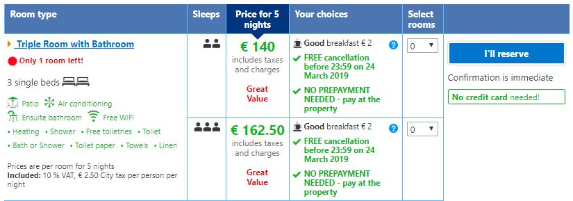 - Total: 319 euro / 2 = 159.5 euro/p