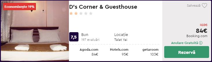 - Cazare 1: D’s Corner & Guesthouse – 84 euro / 7 nopti / camera dubla