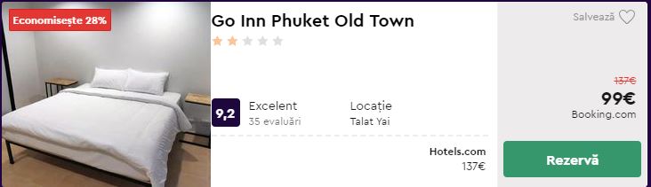 - Cazare 2: Go Inn Phuket Old Town – 99 euro / 7 nopti / camera dubla